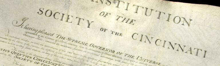 The Institution of the Society of the Cincinnati, adopted at the founding meeting on May 13, 1783, remains the principle guiding document of the organization to the present day. The first official copy, known as the original Institution, was inscribed on a large, irregularly shaped sheet of parchment and signed by George Washington and thirty-five … Continue reading The Institution of the Society of the Cincinnati